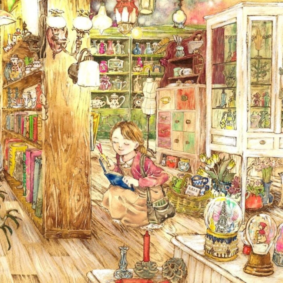 この記事のアイキャッチ画像のようなアンティーク雑貨店のような雰囲気も、絵本と小物の組み合わせから生まれます。
